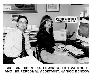 You've seen his face plastered, literally, all over the Memphis and Shelby County area with zany slogans and sayings such as "Check with Chet", "I am Crazy...About Real Estate", "Outstanding in His Field (literally)", "Not Just Another Pretty Face", and probably his most memorable to date, the "Draw Chet" for Halloween. So how does all this nutty stuff fit into the serious business world? Well, Chet said the craziness helps build his clientele, which translates into sales and money, the goal of any business. "I like using creative advertising to get people to remember my name," he said. "I like to have fun with it. The crazy stuff differentiates myself from other Realtors, and hopefully, it makes people laugh. I think people need to laugh. They're just so busy with their jobs and the stress in their lives, I like to know when they get their mail they might smile or laugh, even if it's just for a moment." Chet's personal assistant Janice Benson quickly adds, "If we didn't laugh, we'd both be in an institution." All kidding aside, Chet is serious when it comes to selling real estate. The impressive number of certificates and plaques adorning his office walls, not to mention the stacks of paper and files and the computer equipment, prove just how serious Chet can really be. "I have a basic philosophy," he began, "I never tell people something that I wouldn't tell my own parents and I don't tell people to do something I wouldn't do myself. Plus, I always, always return my phone calls, and immediately." Of course the fact that Chet likes what he does for a living has helped him down life's path, a path that is paved with such golden bricks as 1995 sales approaching $17 million, being a Life Member of the Multi-Million Dollar Club and completing more than 2,500 hours of real estate courses and seminars on real estate. "I like what I do, and I do what I do seven days a week," Chet explained. "I would have to say about 95 percent of my business is referrals. I would have to say that my biggest hobby is real estate. I like it. It's a challenge and it helps people." Chet also is a certified residential specialist and a graduate of the Realtors Institute of Tennessee. So, how is business? "It's good," he said with a smile. "I think interest rates are low which fuels the whole market. I keep getting more referrals because I give people the exact facts the way they are. Plus, I keep in touch with all my customers and clients." "We prepare folks for all the things that will take place during a sale," Benson added. Chet isn't the only real estate guru in the family. Judy Whitsitt, Chet's wife, specializes in new home sales by quality, reliable builders. Judy, who also is a Life Member of the Multi-Million Dollar Club, was a part of the force that lead to Chet's 1995 sales figure of almost $17 million. Chet said he and Judy plan to do even more this year. The Whitsitts have two children, 14-year old Josh and 12-year old Jennifer. Chet also lists going to the beach and snow skiing as his hobbies. With Chet's office already completely computerized, he wants everyone to know that all of his listings are on the Internet! |